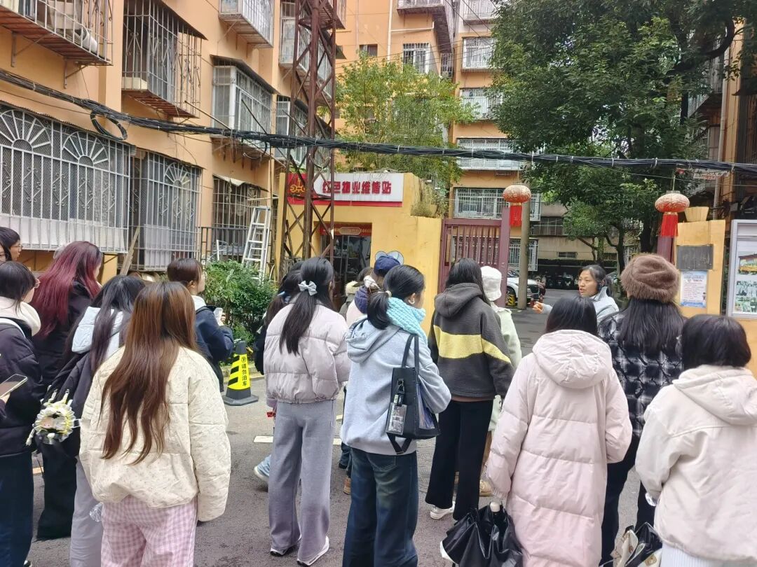 活动伊始,高校师生以基层治理“实践观察员”身份分两组深入社区。一组师生走进曙光社区,实地参观15个“红色便民小屋”见证资源盘活治理智慧;认真聆听社区攻坚治理历程,重点学习“党建引领+红色物业+居民自治”的老旧小区破局模式,汲取党建赋能社区经验。另一组师生赴东华路社区,学习老旧小区改造推进路径,探究“先锋管家”服务中心运行机制,观摩芳华里党群服务中心、民族团结缘聚社等特色片区功能布局,深入学习“三块三”伙食团、家门口福利社等惠民品牌打造经验。随后,两支队伍相聚凤凰山社区,聚焦2600平方米多功能阵地,了解“不打烊的党群服务中心”运营模式、“金小马”1652志愿服务体系、“15分钟服务圈”建设等特色内容,实地感受校社合作、“红色物业”入驻、社会组织培育的多元治理成果。